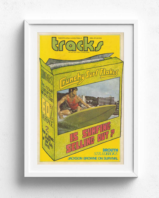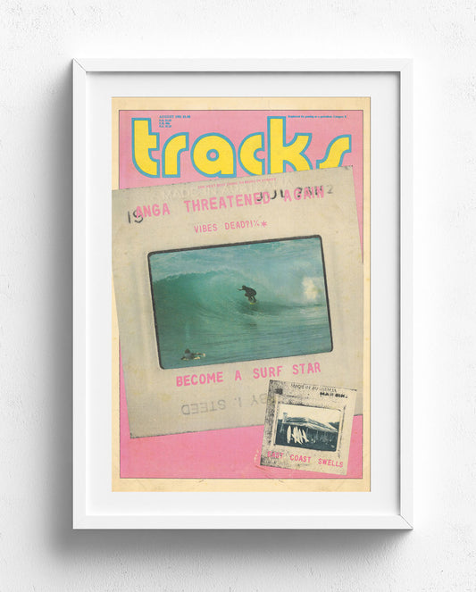 Tracks magazine, founded in 1970 by Albe Falzon, John Witzig, and David Elfick, began as a countercultural surf publication in Australia. Initially a broadsheet, it quickly became the go-to magazine for surfers, blending surf stories with music, travel, and alternative living. Known for its raw, rebellious style, Tracks captured the soul of surfing in the 70s and 80s, solidifying its reputation as “the surfers’ bible.” The magazine also popularised icons like Captain Goodvibes, a satirical comic character that resonated with the surf community.
