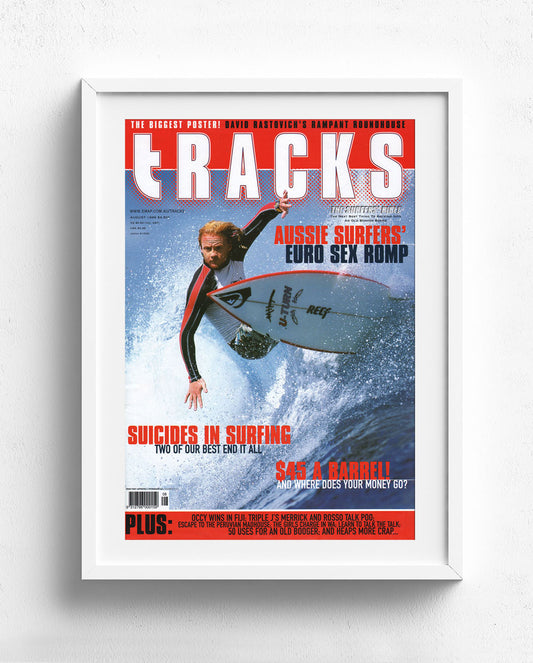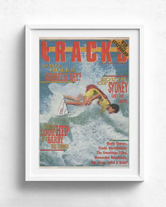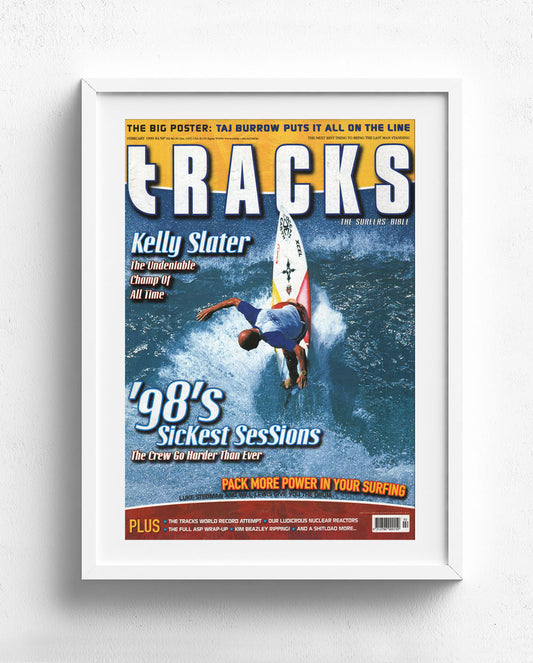 A Tracks cover always stirs up a heady dose of welcome nostalgia. At a glance the images can transport you to another time and place, evoking feelings and memories connected to your favourite surfing icons or most treasured surfing experiences. The alchemy of stellar photography, cutting-edge design, and catchy text lines makes the covers timeless pieces of pop art. Hang them on the wall at home or work, or purchase one as a gift that won’t disappoint. Hell, grab a few and dedicate a whole wall to these perfect timestamps of surfing history.