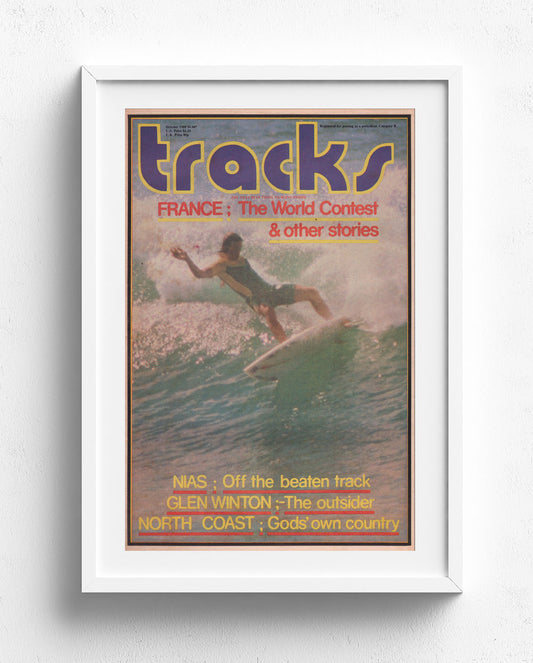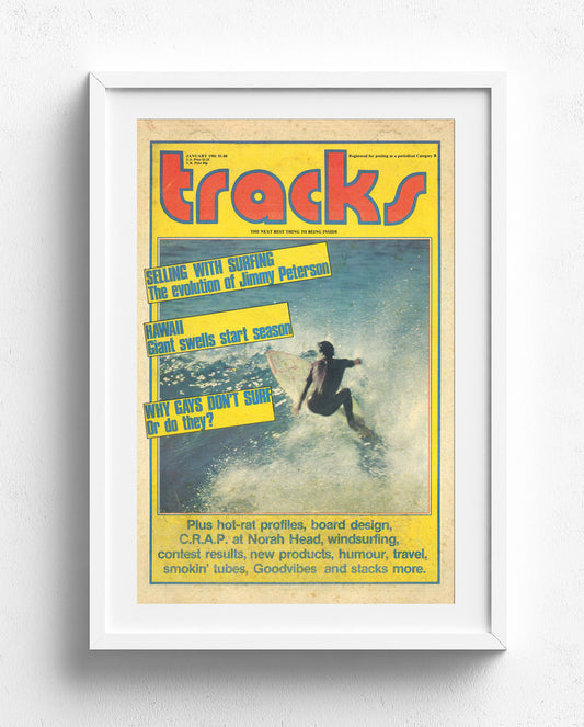 A Tracks cover always stirs up a heady dose of welcome nostalgia. At a glance the images can transport you to another time and place, evoking feelings and memories connected to your favourite surfing icons or most treasured surfing experiences. The alchemy of stellar photography, cutting-edge design, and catchy text lines makes the covers timeless pieces of pop art. Hang them on the wall at home or work, or purchase one as a gift that won’t disappoint. Hell, grab a few and dedicate a whole wall to these perfect timestamps of surfing history.
