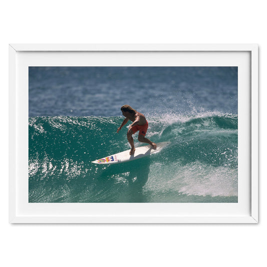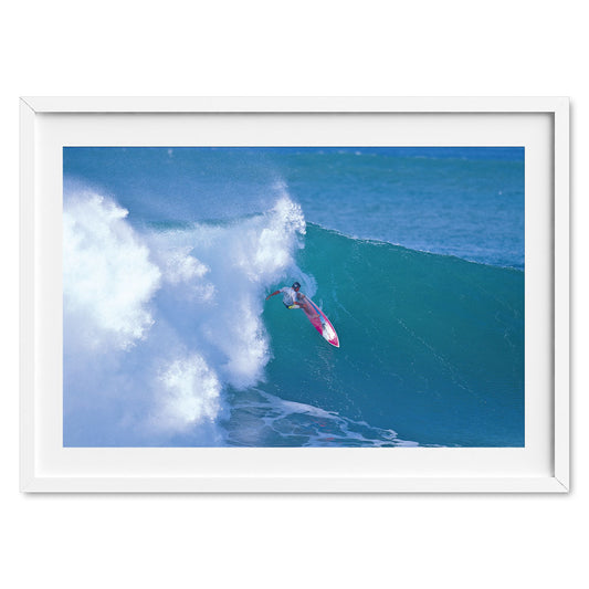 After more than fifty years of publication, Tracks has seen thousands of incredible photos come across the desk. The print store features a curated selection of the finest images from a collective of surfing’s most celebrated photographers. Replete with present wonders and echoes of the past, the store showcases enchanting lineups, surfing icons, era-defining moments, ocean art, black-and-white classics, and much more. Search the portals and you are certain to find something to hang on the wall that makes you fall in love with surfing all over again each time you glance up. Our prints are delivered in a range of sizes with a selection of high-quality frames.